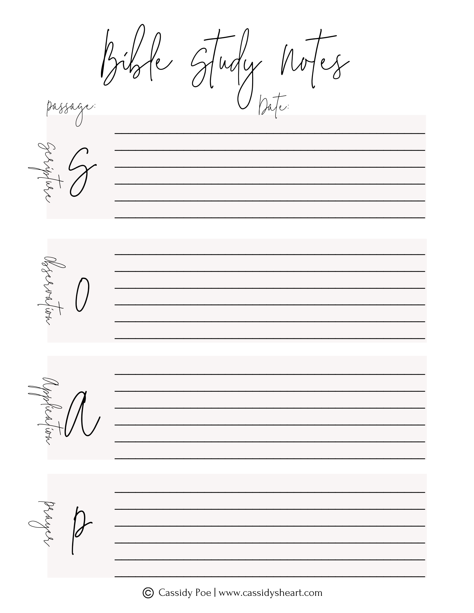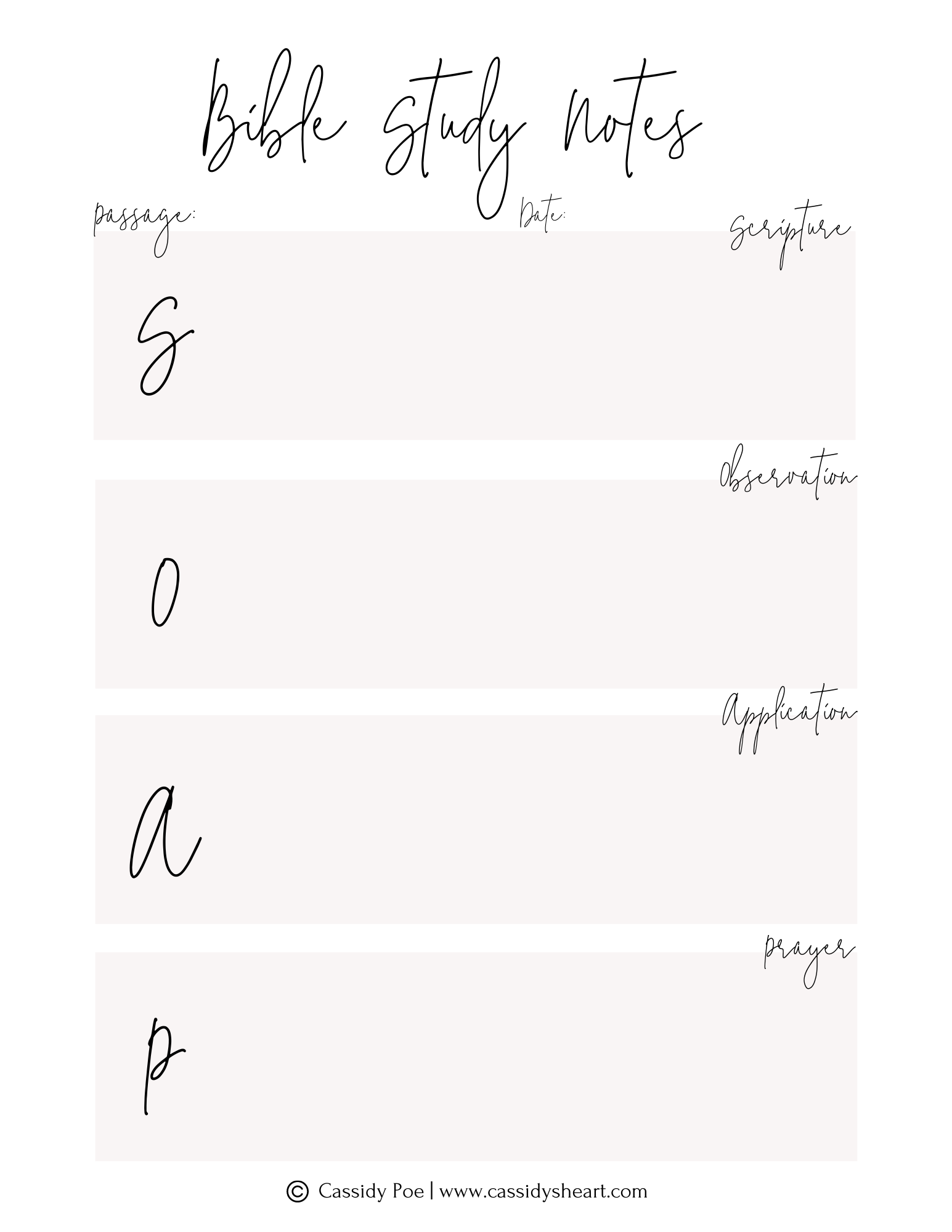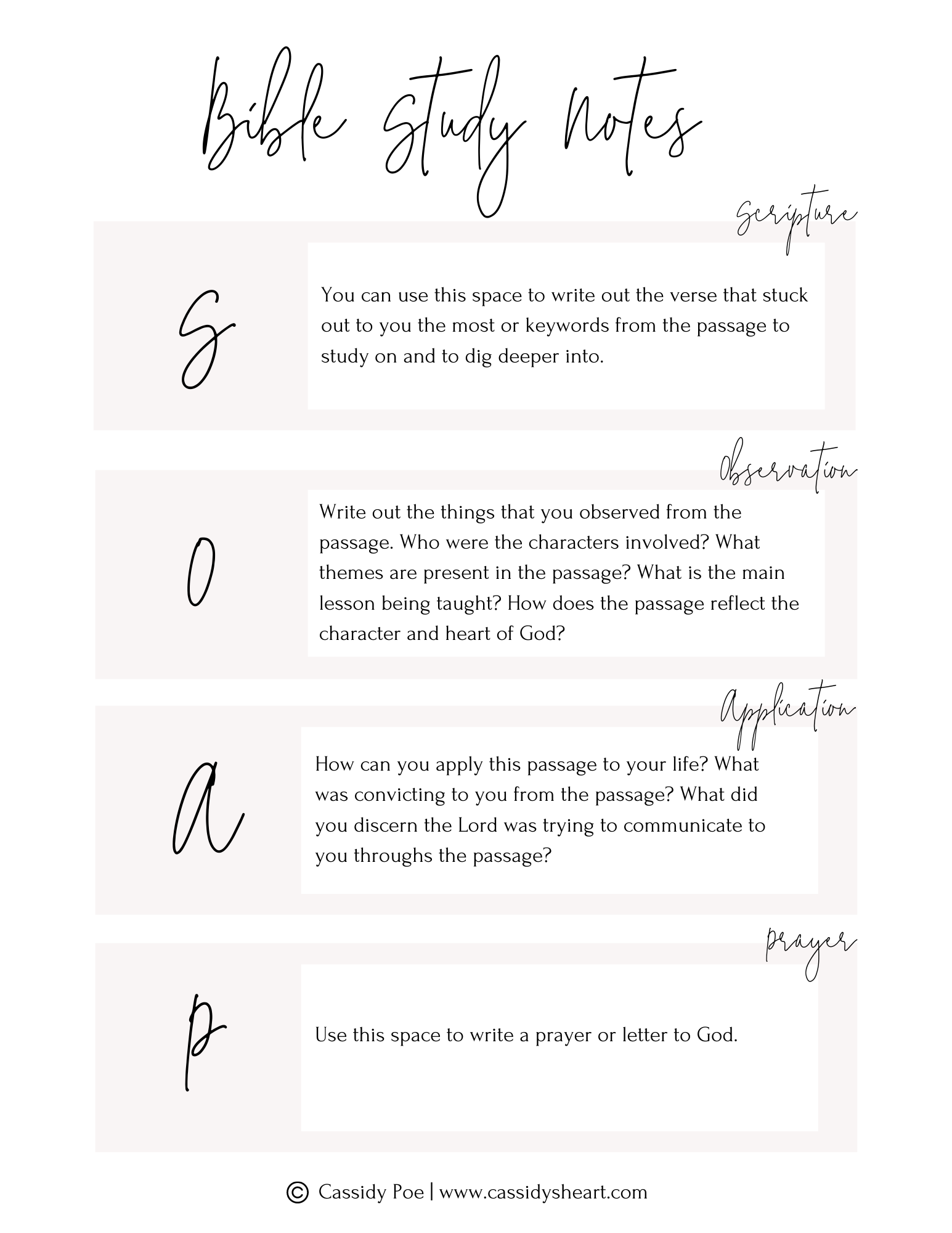 - (S)cripture – Write out the verse or passage of Scripture that stuck out to you from your reading.